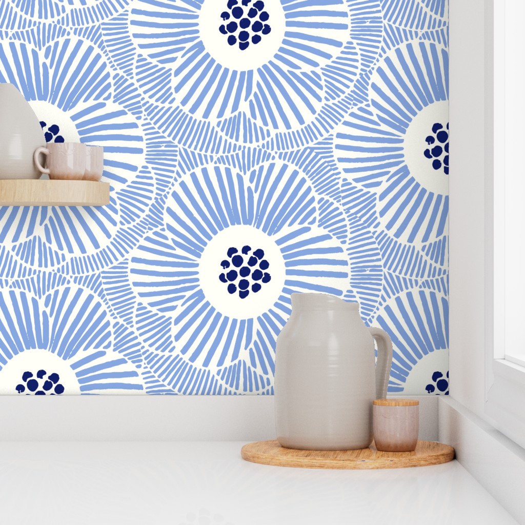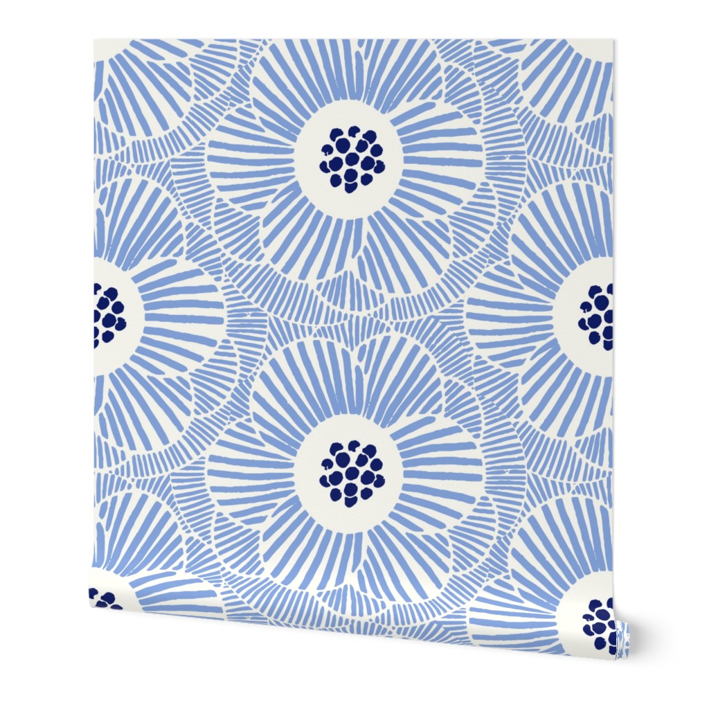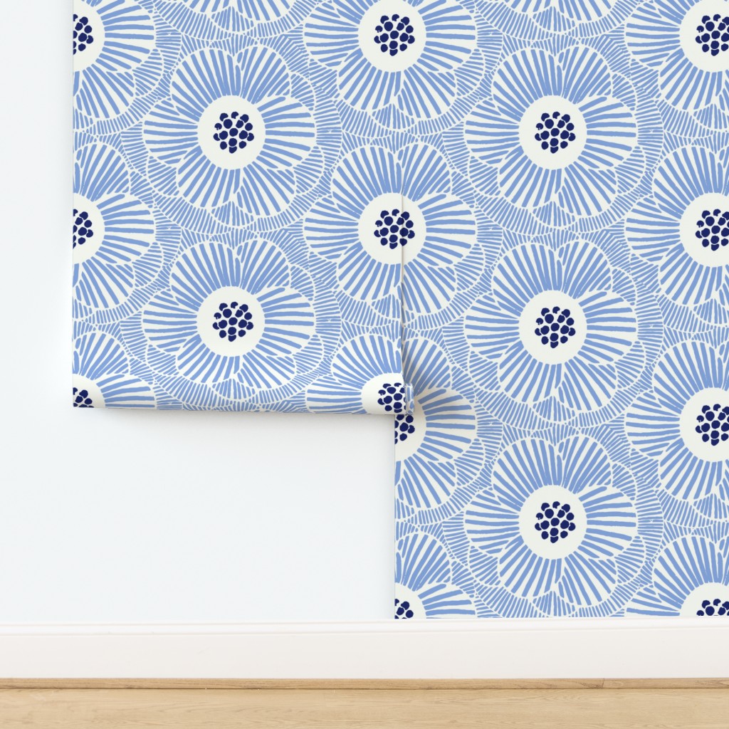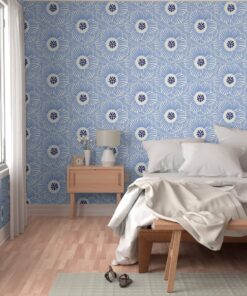 Luxe Woven Linen Texture: Crafted from 100% paper with a luxury linen finish. This tactile surface gives the bright blue petals a soft, matte depth, making the design look like an expensive fabric mural rather than a flat print.