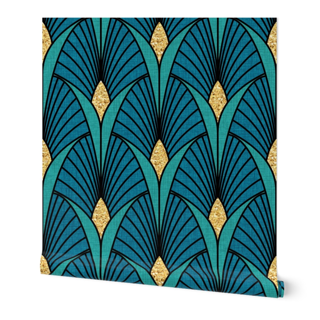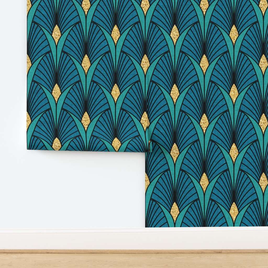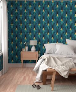 Gilded Majesty: Art Deco Peacock & Emerald Wallpaper