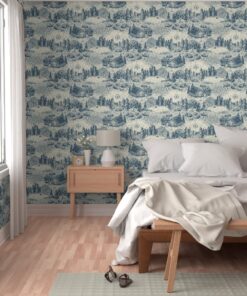 By combining the elegance of traditional French Toile de Jouy with the rugged charm of the great outdoors, this design offers a sophisticated “New Americana” look. It’s the perfect choice for a cozy guest room, a rustic lake house, or a moody bathroom that needs a touch of storybook charm.