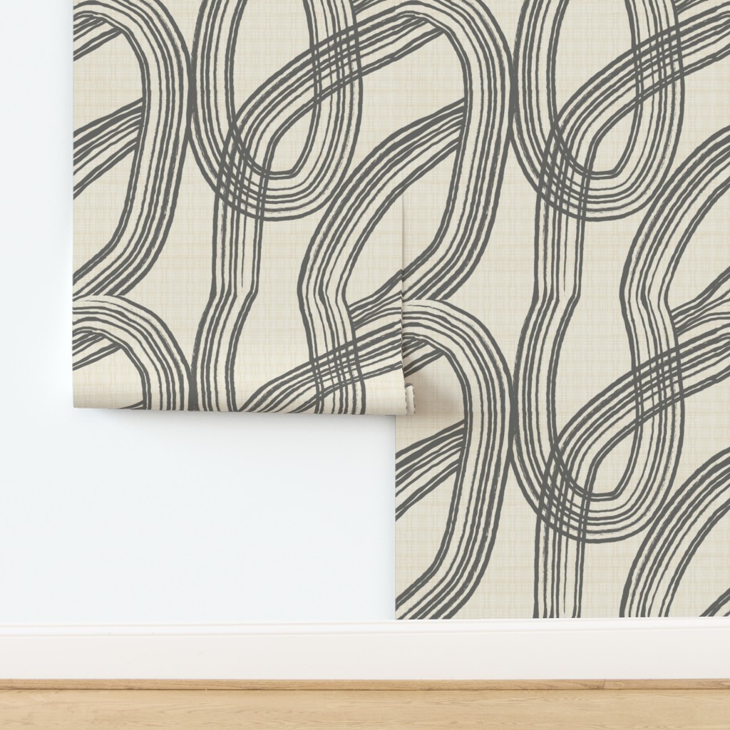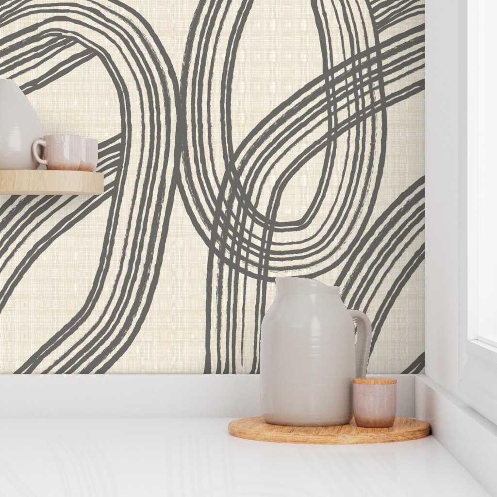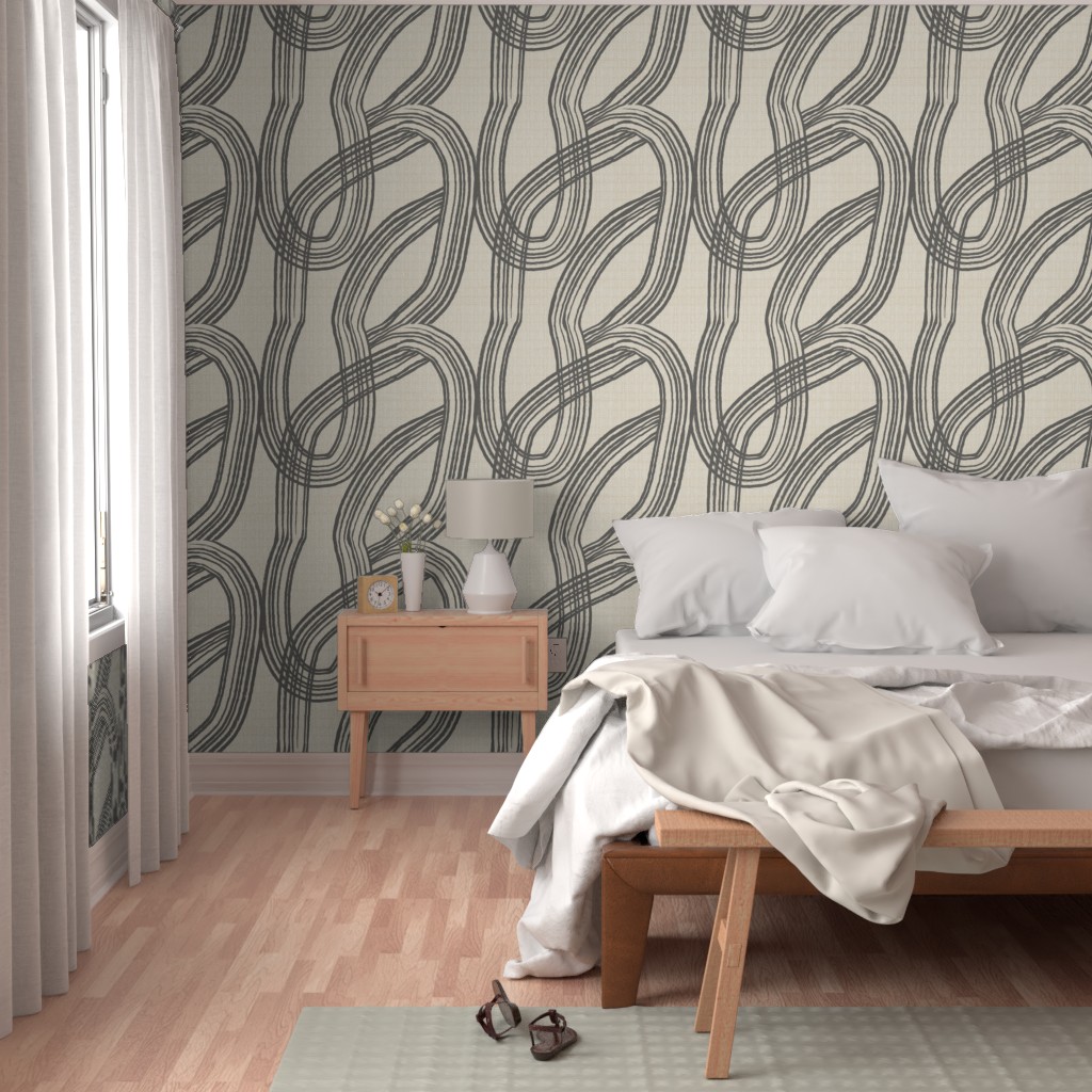 Redefine your space with the power of the “Quiet Bold.” Designed by Cathy Thompson, the Urban Jungle wallpaper is a masterclass in contemporary minimalism. Featuring a grand, large-scale geometric motif, this design uses sharp, dark architectural lines to cut through a warm, neutral beige backdrop.